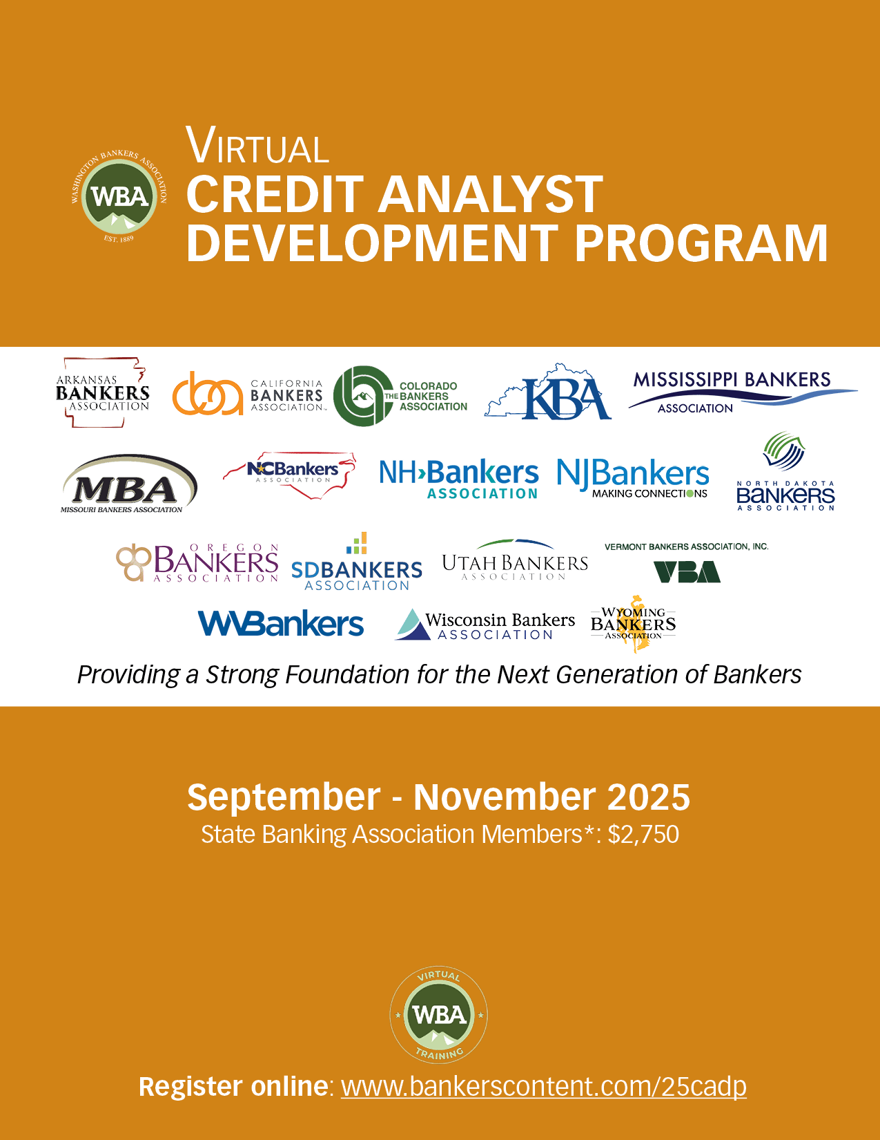 Brought to you by Washington Bankers Association, NH Bankers is pleased to join 17 additional state bankers associations to present the Credit Analyst Development Program virtually September - November, 2025.
